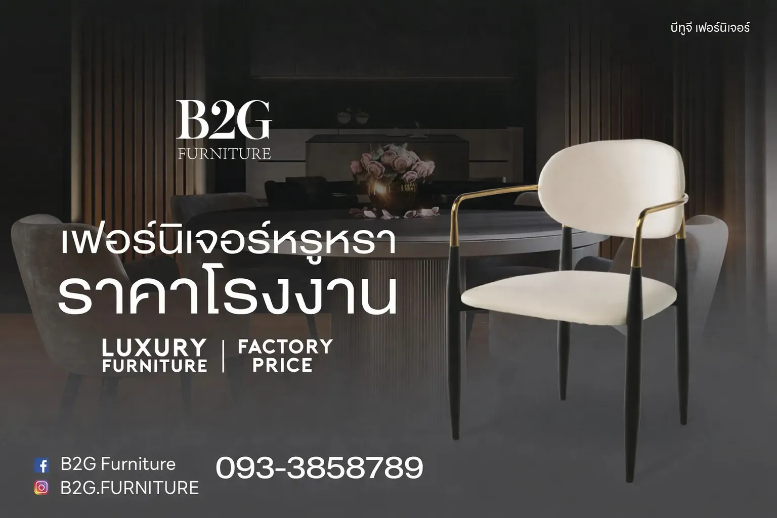 B2G Furniture เฟอร์นิเจอร์หรู สั่งทำ พร้อมให้บริการกับลูกค้าใน ราคาโรงงาน เราให้ความสำคัญกับความต้องการของลูกค้าเป็นหลัก โดยไม่มีข้อกำหนดเรื่องจำนวนการสั่งซื้อขั้นต่ำ คุณสามารถออกแบบและปรับแต่งเฟอร์นิเจอร์ตามสไตล์และความต้องการได้อย่างอิสระ โดยสินค้าทุกชิ้นผลิตในประเทศไทย เราใช้วัสดุคุณภาพสูง ทั้งไม้ เหล็ก และสแตนเลส เพื่อสร้างสรรค์เฟอร์นิเจอร์ที่ทนทานและมีความสวยงามในทุกชิ้นงาน พร้อมรับประกันคุณภาพสินค้าทุกชิ้น อีกทั้งยังมีบริการดูแลหลังการขาย เพื่อให้คุณมั่นใจในคุณภาพและการบริการที่ดีที่สุดจากเรา